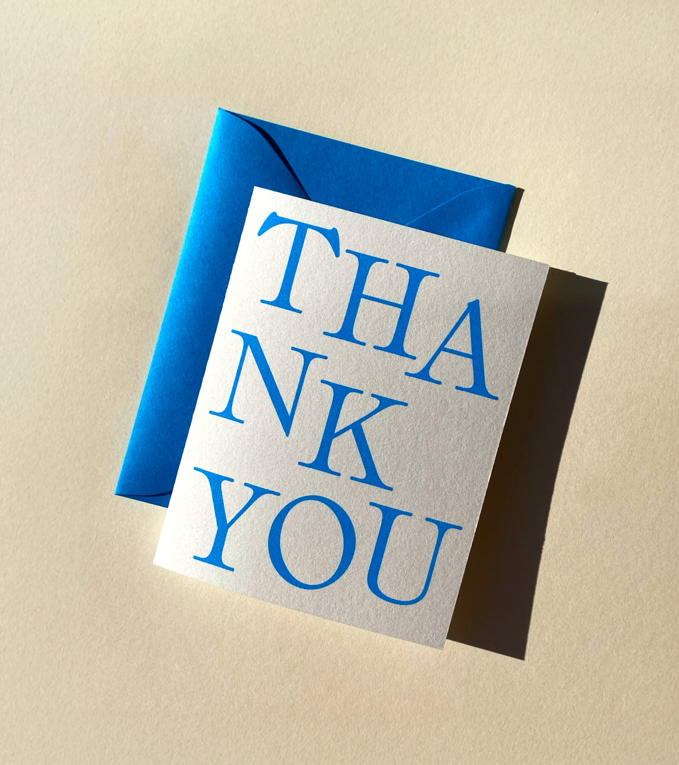 A note for showing appreciation. Original artwork set in Lyra typeface. Blank inside.