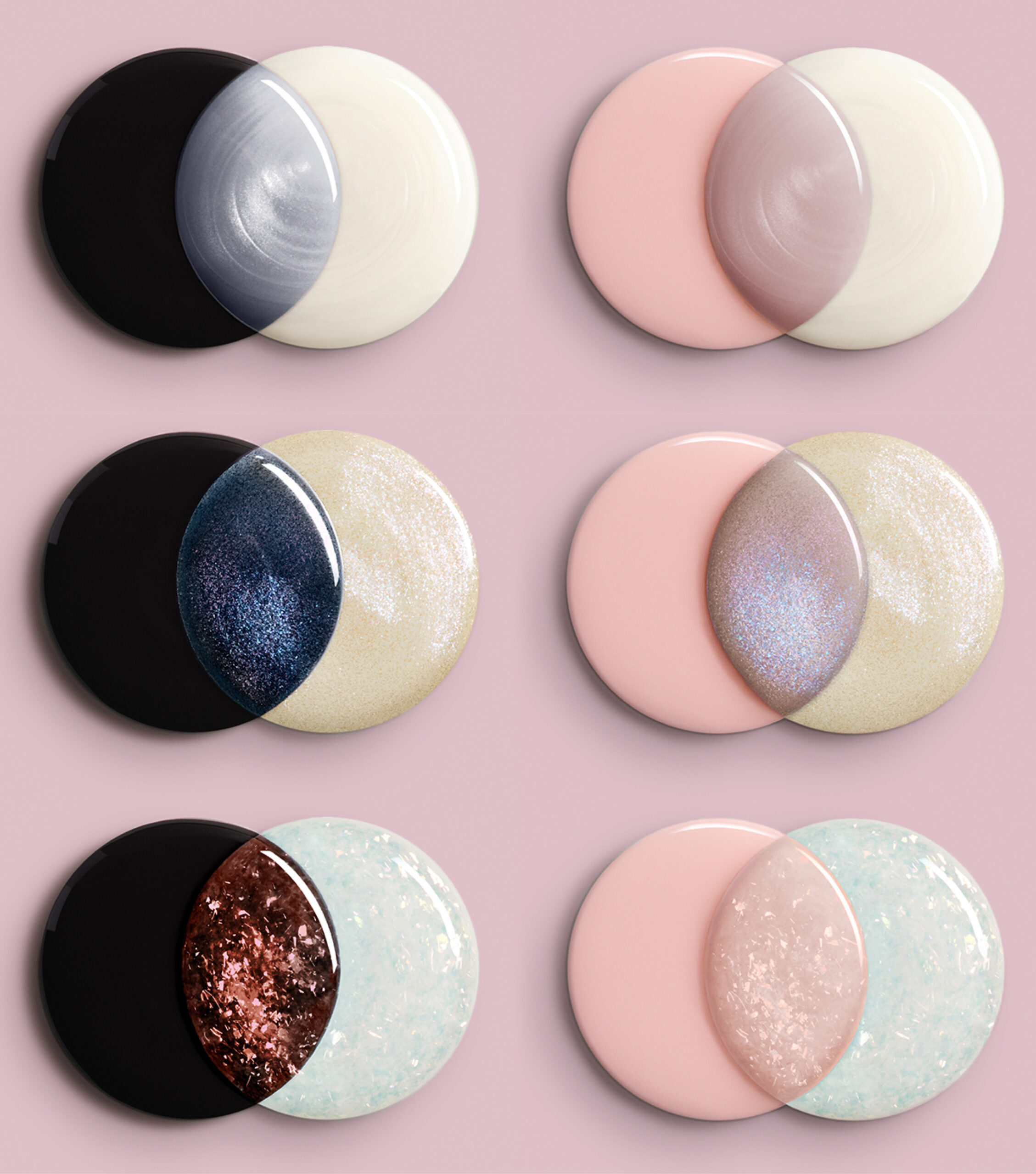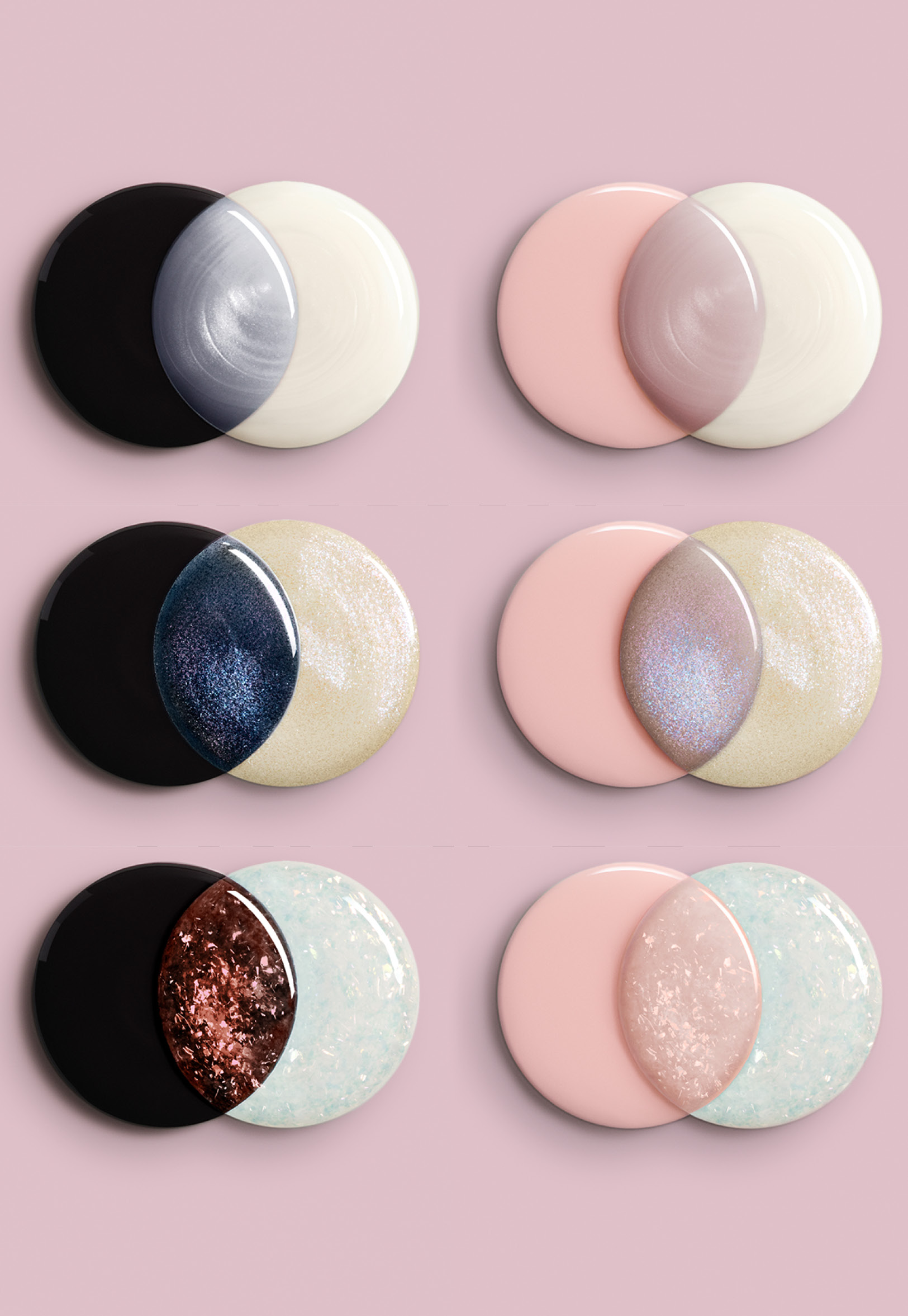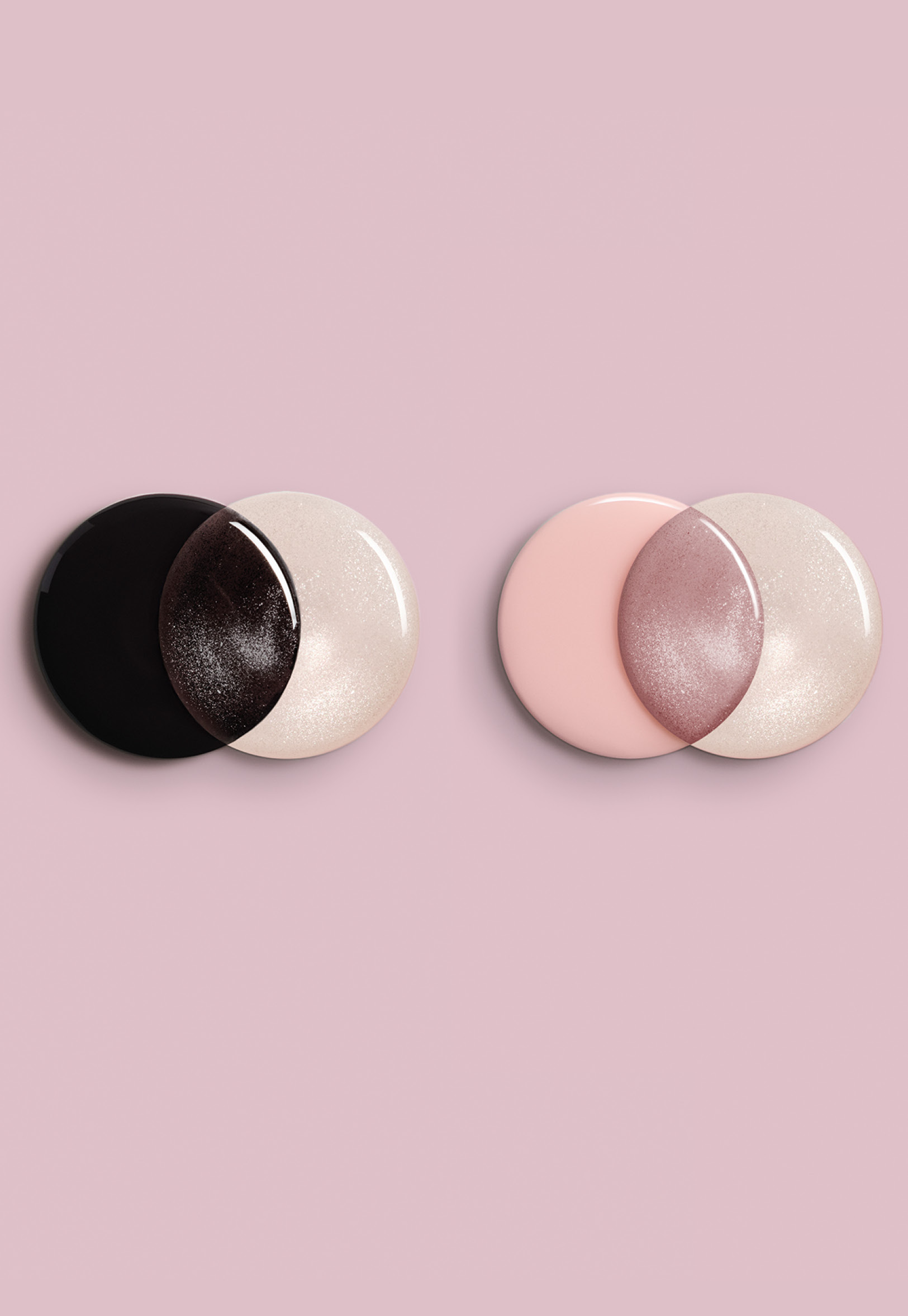 Inspired by the product’s range of finishes—from soft pearlescent glow to mirror-like chrome, the campaign explores a sensorial visual world rooted in luminous, reflective surfaces. The visual direction draws from the ‘glazed donut’ trend, with each prop and surface intentionally chosen to echo the collection’s reflective finishes.
